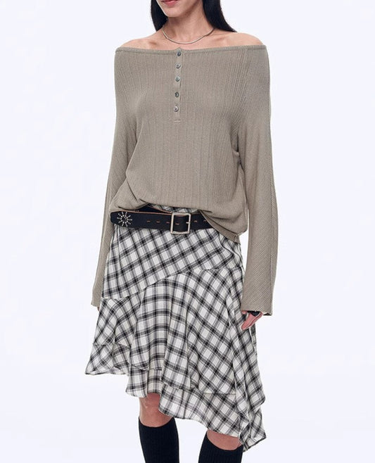 Layered Tencel Wool Fake Two-Piece Splicing Off-Shoulder Versatile Knitted Top