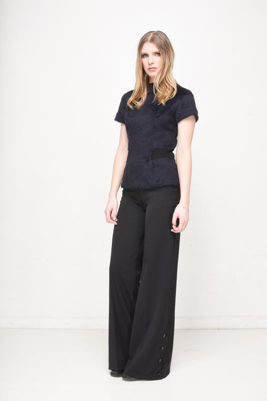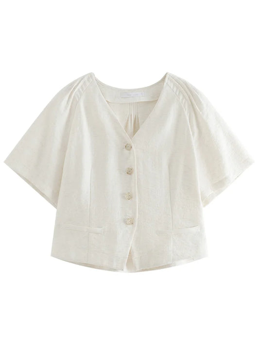 V-Neck Wide Short Sleeves Single Breasted Shirt