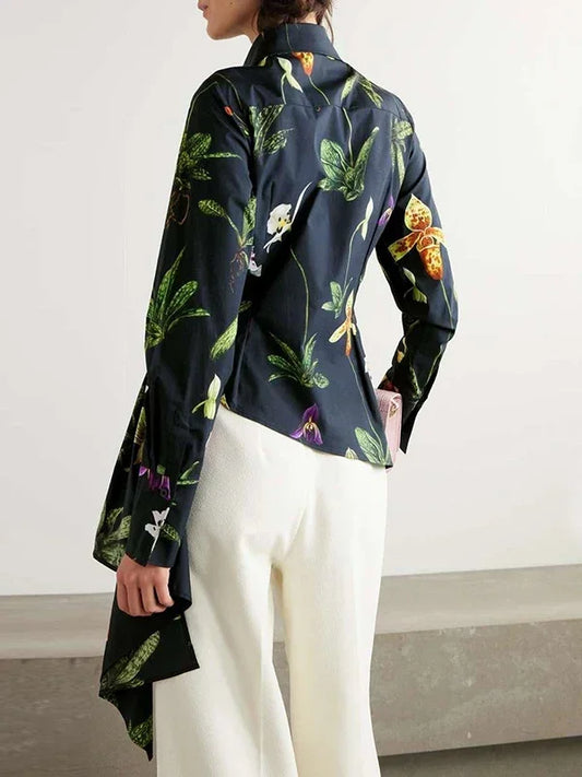 Elengant Asymmetric Floral Long Sleeve Blouse