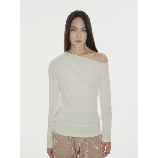 Off-Shoulder Slim Fitted Lyocell Tencel Wool Long Sleeve T-Shirt
