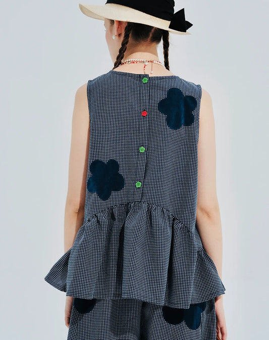 Blue Plaid Flower Patchwork Sleeveless Top