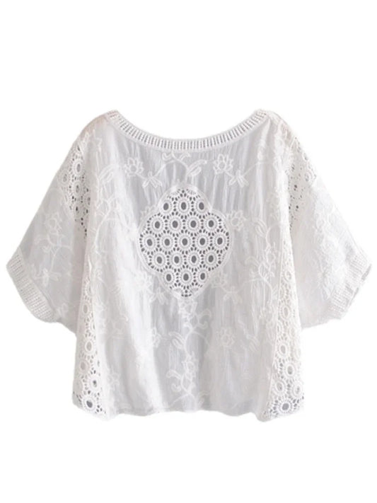 Vintage Lace Short Sleeve Loose Crop Cardigan