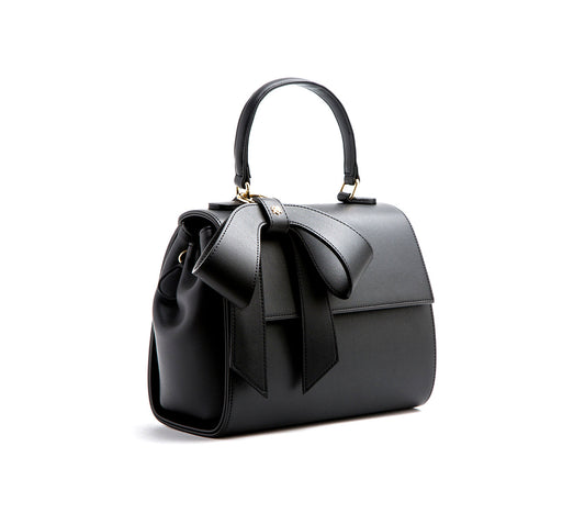 Light Pink Vegan Crossbody Leather Bag with Gray Bow