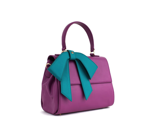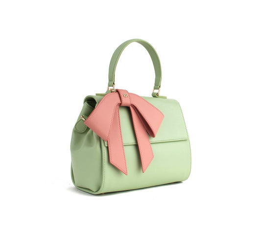 Mint Vegan Crossbody Leather Bag with Pink Bow