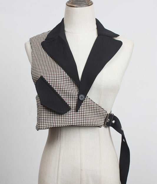 Trendy Irregular Loose Fit Short Vest with Collar and Adjustable Strap