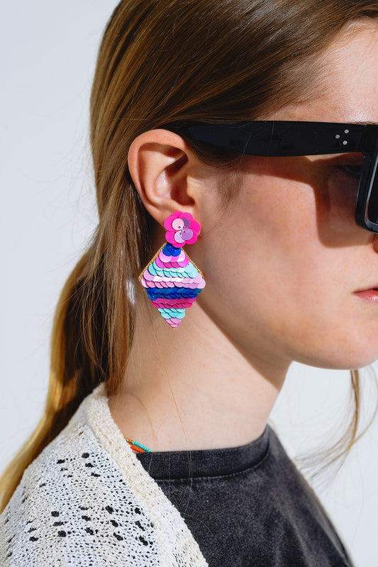 Diamond Shape Earrings With Multicolor Sequin Details.