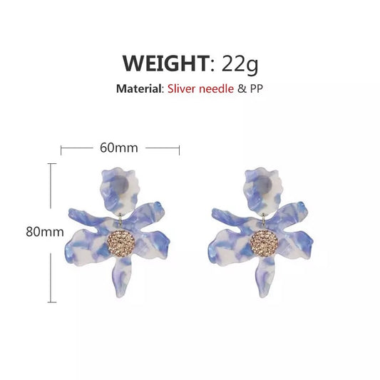 Unique Smoke Silver/ Blue Flower Statement Earrings